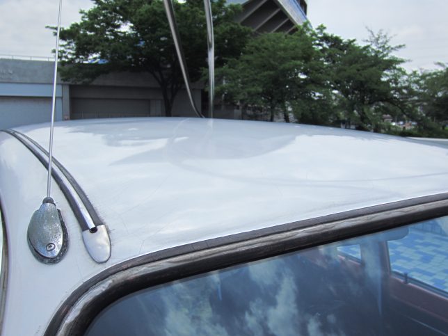 屋根は若干デコボコしています。塗装状態も良くないです(写真クリックで拡大)。ストライプのシールは剥がすと塗装ごと剥がれる可能性があります。車両全体が年式相応にやれています。