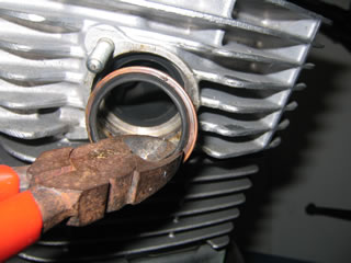 付属のガスケットをはめます。 | マフラーをつけていきます。 |